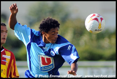 La mi-temps calma les esprits de ce matche de coupe que les deux équipes voulaient naturellement gagner. Au retour des vestiaires, les jeunes joueurs du HAC, motivés par les paroles de leur entraineur, entamèrent la seconde période ,en toute confiance, « pieds au plancher ». La technique individuelle de chacun mise à la disposition du collectif fit merveille. Emmené par MENDES (en photo ci-contre), omniprésent à la pointe de l’attaque, sachant distiller avec précision d’exellents ballons, c’est fort logiquemment que tour à tour GENDOUZ – EL BAILLAL – puis TRAORE assommèrent leur adversaire Caennais portant le tableau d’affichage à 4 à 0 en faveur du HAC.