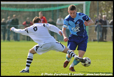 Avec une équipe très jeune, Bruno Rohart et les « Ciel et Marine » ont parfaitement géré la réception de Lesquin. Dominateur, le HAC a rapidement pris les devants par Thomas Martin (en photo ci-contre), sur un centre de Soumare (1-0, 20ème), avant de creuser l’écart en deuxième période. Après une déviation de Martin, Thiam doublait la mise (2-0, 52ème), avant même de s’offrir le doublé de la tête dans la lancée, parfaitement servi par Boketsu (3-0, 70ème). L’addition aurait même pu se corser davantage, tant les Havrais avaient la main mise sur la partie, mais c’est finalement Lesquin qui réduisait le score, sur un penalty étrange à cinq minutes de la fin (3-1, 85ème). Peu importe, le trou était fait, et il en fallait aujourd’hui beaucoup plus pour priver les « Ciel et Marine » du succès. Avec une équipe encore constituée de nombreux 16 ans, le HAC ira mercredi rattraper son match en retard à Valenciennes (15h30), avant d’aller défier Rouen, dimanche prochain.