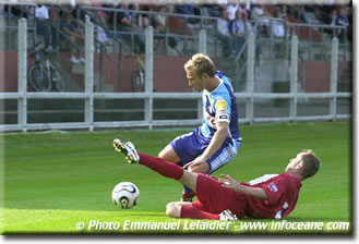 Dès la reprise, les Hacmen passent très près de l’égalisation, Mahamadou Cissé se charge de tirer un coup franc direct à l’entrée de la surface, mais malheureusement sa frappe s’écrase sur la barre du portier nordiste Eric Allibert.. Cette action fut finalement la seule vraie occasion des havrais en seconde mi-temps, les Hacmen n’ont pourtant pas ménagé leurs efforts, mais ensuite jamais les Havrais n'ont su se mettre en position d’inquiéter sérieusement les Dunkerquois. Des Ciel & Marine qui, en plus, finiront la rencontre à 10 après l’expulsion (injuste) d’Olivier Blondel qui est intervenu (sans les mains) en dehors de sa surface. Le jeune Chardel Makaya qui l’a remplacé pour le dernier quart d’heure de jeu a toutefois eu l’occasion de briller avec une incroyable détente alors que les Dunkerquois se voyaient déjà avec un deuxième but au compteur.