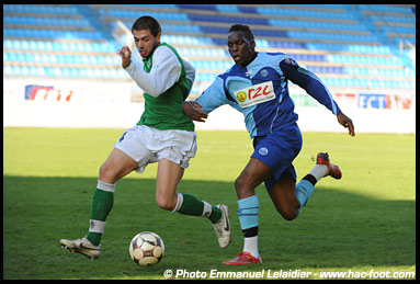 Pourtant, les Normands entamaient le match dans les meilleures dispositions, et dominaient outrageusement la première période. Boli traduisait rapidement cette pression par des occasions, mais ne concrétisait ni du pied (2ème), ni de la tête (4ème). Fettouhi (9ème) et « Rako » (26ème) s'essayait ensuite sur coup franc, mais Pinoteau veillait. Il était également vigilant sur l'ultime banderille du premier acte lancée par Youssouf des vingt mètres, sur laquelle il se couchait bien (37ème). Même si l'assise des Havrais semblaient indiscutable, les Franciliens auraient bien pu profiter de leur seule occasion pour scorer, mais Ojong, après avoir semé Gillet, cognait le poteau (17ème).