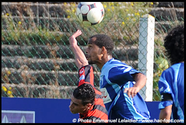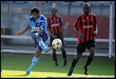 La physionomie de la rencontre n’évoluait pas à la reprise. Le bloc francilien n’était que trop rarement perturbé par les offensives havraises. Noro, d’un coup-franc de vingt mètres, chauffait les gants de Jous (63ème). Mais la situation se débloquait quelques minutes plus tard. Mendes (en photo ci-contre) débordait et adressait un centre fuyant vers Kifoueti. La trajectoire flottante prenait à défaut le portier francilien, qui ne pouvait empêcher le cuir de rentrer (1-0, 67ème).