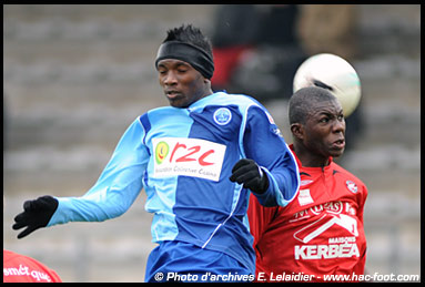 Une semaine après avoir cédé le nul au Stade Malherbe (3-3), les protégés de Jean-Marc Nobilo et Johann Louvel ont cette fois été le chercher avec les tripes! Bousculés par l'équipe bretonne, les « Ciel et Marine » concédaient l'ouverture du score à l'issue du premier quart d'heure sur un centre en retrait repris victorieusement par Reux (1-0, 18ème). Volontaire mais maladroit dans les derniers mètres adverses, le HAC avait le mérite de s'accrocher. Et Mohamed (photo ci-contre), fraîchement rentré, reprenait des vingt mètres un corner mal dégagé par la défense vitréenne pour offrir aux siens un nul finalement mérité dans les derniers instants (1-1, 85ème).