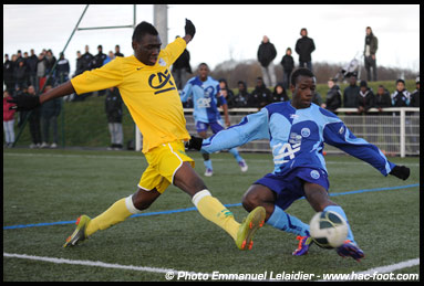 Et côté havrais, alors ? La première occasion du match, déjà, et pas la moindre. Lancé par Ba, N'Kusu remportait son duel face à Dupe, mais Dubois sauvait sur sa ligne (4e). Par la suite, c'est le pied gauche de N'Tangu qui affolait l'arrière-garde nantaise. Sur un coup franc excentré, tout d'abord, ou Bah fut surpris de se retrouver face au but presque vide (28e), puis sur un corner rentrant claqué (32e). Le suivant aurait pu permettre à Ba d'ouvrir le score, mais le but était logiquement refusé pour une charge sur Dupe, particulièrement rassurant dans la cage du FCN (41e). Une fois le mal fait, lors du dernier quart d'heure, les « Ciel & Marine » évitaient les calculs en optant pour un jeu plus direct. Et il s'en est fallu d'un rien pour que le HAC arrache la séance de tirs au but, malgré un visage bien emprunté et une défense alors réduite à trois éléments. Ba, pour sa dernière apparition en Coupe Gambardella (comme Sow, Metelus et N'Tangu), s'employait sur un coup franc menaçant (81e) puis sur une demi-volée déviée in extremis (90e+5). Entre temps, la balle de match était sortie des pieds de Balmy. Son coup franc semait la panique devant le but nantais, mais la réussite fuyait (90e+4). Elle avait choisi son camp un quart d'heure plus tôt, sans qu'il ne reste énormément de place pour la contestation...