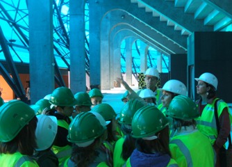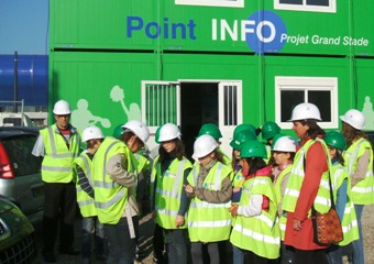 Nous sommes allés visiter le grand stade. Notre animatrice, Cécile nous a d'abord prêter des chasubles et des casques et nous avons écouté les consignes de sécurité car nous étions sur un chantier.