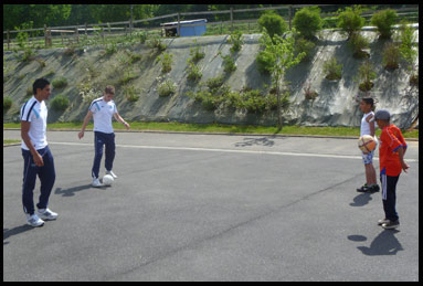Maxime et Zacharie ont ensuite avec toute leur gentillesse et disponibilité, pratiquer un échange de ballons avec les jeunes.