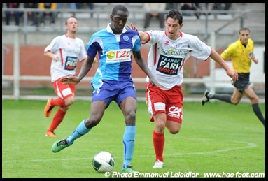 Techniquement et tactiquement, les Ciel et Marine ont toutefois prouvé que le CFA était taillé pour eux. Face à un adversaire encore en National la saison passée, ils ont largement tenu la comparaison. D'abord fermé, le jeu se résumait à une rigueur défensive. La charnière composée de Diarra et Dikamona (23 ans, aîné havrais ce samedi) s'avérait d'entrée efficace, Perre (arrivé de Gueugnon) trouvant sa place dans le couloir droit. Jamais les Havrais ne furent dépassés, au même titre que les Bretons d'ailleurs. Jusqu'à l'approche de la mi-temps, où Mahrez débloquait les compteurs en profitant d'un centre de Perre, justement, allumant Monnier à bout portant (1-0, 43').