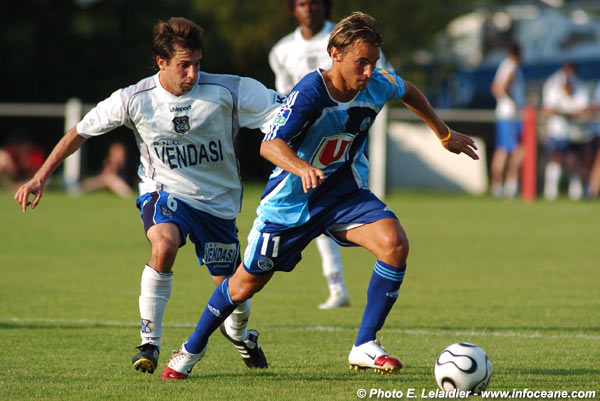 Les Corses qui ont débuté leur préparation une semaine avant le HAC était donc peu plus au point physiquement, cela ne pause cependant pas trop de problèmes aux Ciel & Marine qui sont bien en place dès le début du match, Lesage est même le premier a se créer une occasion de but d'une frappe croisée qui rase le poteau droit de Leca, le portier Bastiais. Privé de Traoré (tendinite), Lesage est associé à Hoareau pour la première mi-temps, ce même Hoareau qui se créera deux belles occasions, la première stoppée par Leca, la seconde de la tête qui est repoussée par le poteau, pas de chance pour Guillaume. Les Bastais de leur côté parviennent à inquiéter la défense Havraise sans toutefois se montrer décisif et finalement Steve Mandanda (remplacé par Olivier Blondel à la 30') n'a pas grand-chose à faire. Lesage quant à lui éblouira le maigre public présent en toute fin de première période, il fait le geste technqiue du match : un coup du sombrero à Laville puis il enchaîne une frappe qui passe juste au-dessus du but bastiais.