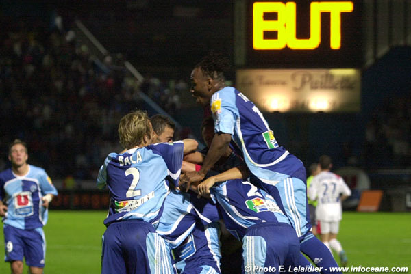 Jean-Michel LesageA la 18’, le stade chavire lorsque sur un débordement de Kharbouchi, ce dernier adresse un centre à ras de terre qui parvient à Martot qui en deux temps parvient à tromper Planté. Le milieu de terrain Ciel et Marine s’arrache vraiment pour conclure cette action.