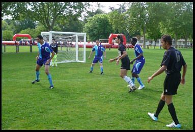 Toujours menés au score et revenant à chaque fois, ils ont remporté ce match à trois minutes de la fin par une très belle combinaison avec à l’initiative Damien GRESSANT pour une passe en profondeur sur Stéphane DELALANDRE qui remisait immédiatement sur Bouba DIA qui ne laissait aucune chance au gardien de but adverse. Le score final en restera à 4 à 3.