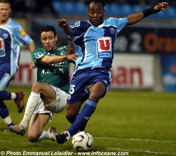 La seconde période reprend avec une autre physionomie. Non pas que le HAC baisse de pied, mais au contraire c’est Libourne qui se met à sortir davantage de sa zone défensive. La Rencontre de débride. Le ballon file d’un but à l’autre. D’une tête dangereuse de Martot sur un centre de l’excellent Laurant à la 49’, Libourne répond par un coup franc de Deranja à la 52’ et parfaitement détourné par Mandanda.