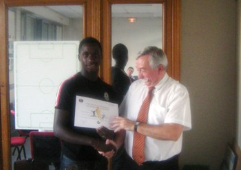 Didier Lainé vice -président du DMF et Jean-Michel Kociszewski, Président délégué de l'Association HAC Football ont remis officiellement les diplômes aux animateurs tout en s'informant du parcours individuel de chacun.