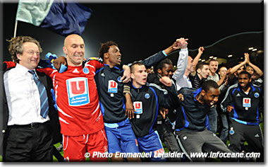 Il fallut donc attendre le deuxième acte pour voir le danger sur le but ardennais. Lesage, Aït Ben Idir, Youssouf, Anin, beaucoup de monde s'y essayait, sans réussite. Le public s'enflammait aussi, proposant la ola pour propulser ses protégés en Ligue 1. Jusqu'à la 65ème minute, où déjà, Revault levait les bras au ciel. Le tableau d'affichage annonçait le match nul troyen à Dijon. Ce résultat officialisait à lui seul l'accession du HAC parmi l'élite. Jean-Marc Nobilo esquissait lui aussi un sourire révélateur. La fête démarrait déjà dans les tribunes, tandis que le leader cherchait à l'embellir en décrochant un succès mérité. Physiquement émoussé, le HAC ne parvenait pas à trouver la faille, mais qu'importe… La Ligue 1 occupait toutes les têtes, que ça soit sur le terrain ou dans les tribunes.