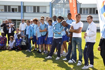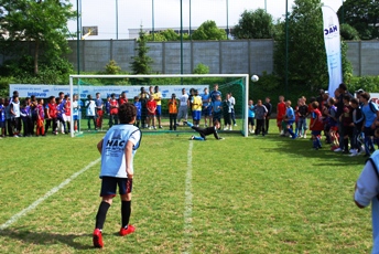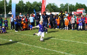Peu avant la fin du festi foot les joueurs de l’équipe professionnelle parrains de l'opération sont arrivés. Ils ont pu assister à la fin des matchs et surtout au concours de tirs au but organisé en fin d’après midi.