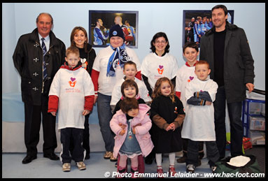 Le HAC, à l’occasion de la rencontre HAC - Socaux de dimanche, a accueilli à Deschaseaux 11 enfants et leur famille conviés en collaboration avec l’Association Un Maillot pour la Vie. Cette association se donne pour objectif d’apporter un peu de rêve et de moments de joie à des enfants souffrant de maladies graves. Au programme de leur soirée au stade : accueil officiel dans un salon, entrée main dans la main avec les pros et coup d’envoi pour deux d’entre eux. Et pour finir séance de dédicaces des joueurs du HAC à la fin du match. Merci aux enfants d’avoir si bien su soutenir les Ciel et Marine !