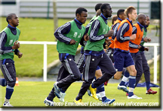 Les joueurs ont débuté ce lundi matin leur deuxième journée de stage. Cette deuxième journée est en réalité la première en ce qui concerne le travail puisque dimanche, les joueurs après avoir eu une séance de balnéo le matin avaient ensuite bénéficié de leur première demi-journée de relâche depuis la reprise, le 24 juin dernier.