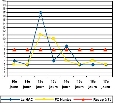 Tableau comparatif des journées de récupération du HAC et de Nantes